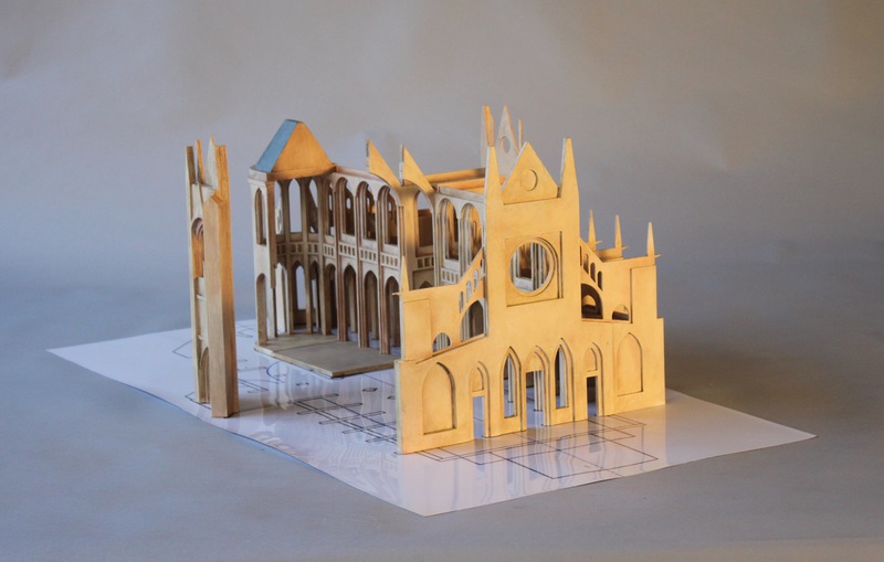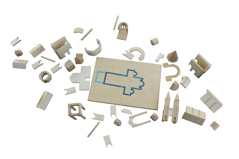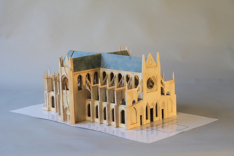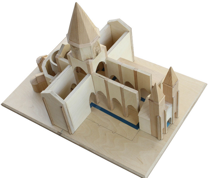 Cette maquette de la cathédrale de Limoges est composée d'une centaine de pièces; grace à un astucieux système d'assemblage par aimants elle peut être montée de multiples façons pour s'adapter au mieux au propos de l'animateur.