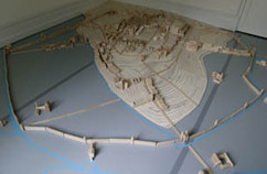 Ce plan relief de la ville de Pontoise permet de reconstituer les grandes transformations de la cité depuis le moyen-age. Des éléments escamotables représentent les édifices disparus et nous font comprendre la rémanence des fortifications sur les boulevards, les travaux important sur les voies d'eau et l'arrivée du chemin de fer.